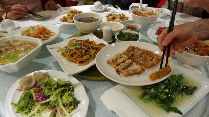 Het middag- en avondeten bestaat uit: bami, loempia's en allerlei verse groentes. Het Chinese voedsel is sinds de oudheid weinig veranderd.